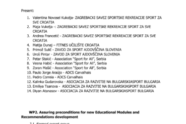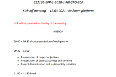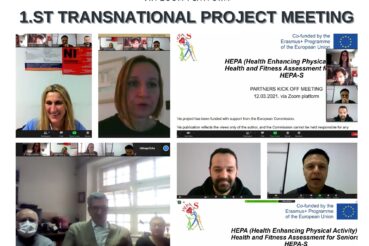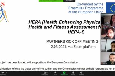 On Friday 12.03.2021. the first meeting of partners on the project Hepa S – Health and Fitness Assessment for Seniors took place. In view of the situation with the COVID-19 pandemic, the meeting was held online via zoom platform. The aim of the meeting was to get to know the partners and their organizations, present them with a Management plan and familiarize them with their tasks on the project. The next meeting is planned for June 2021 in Portugal.
