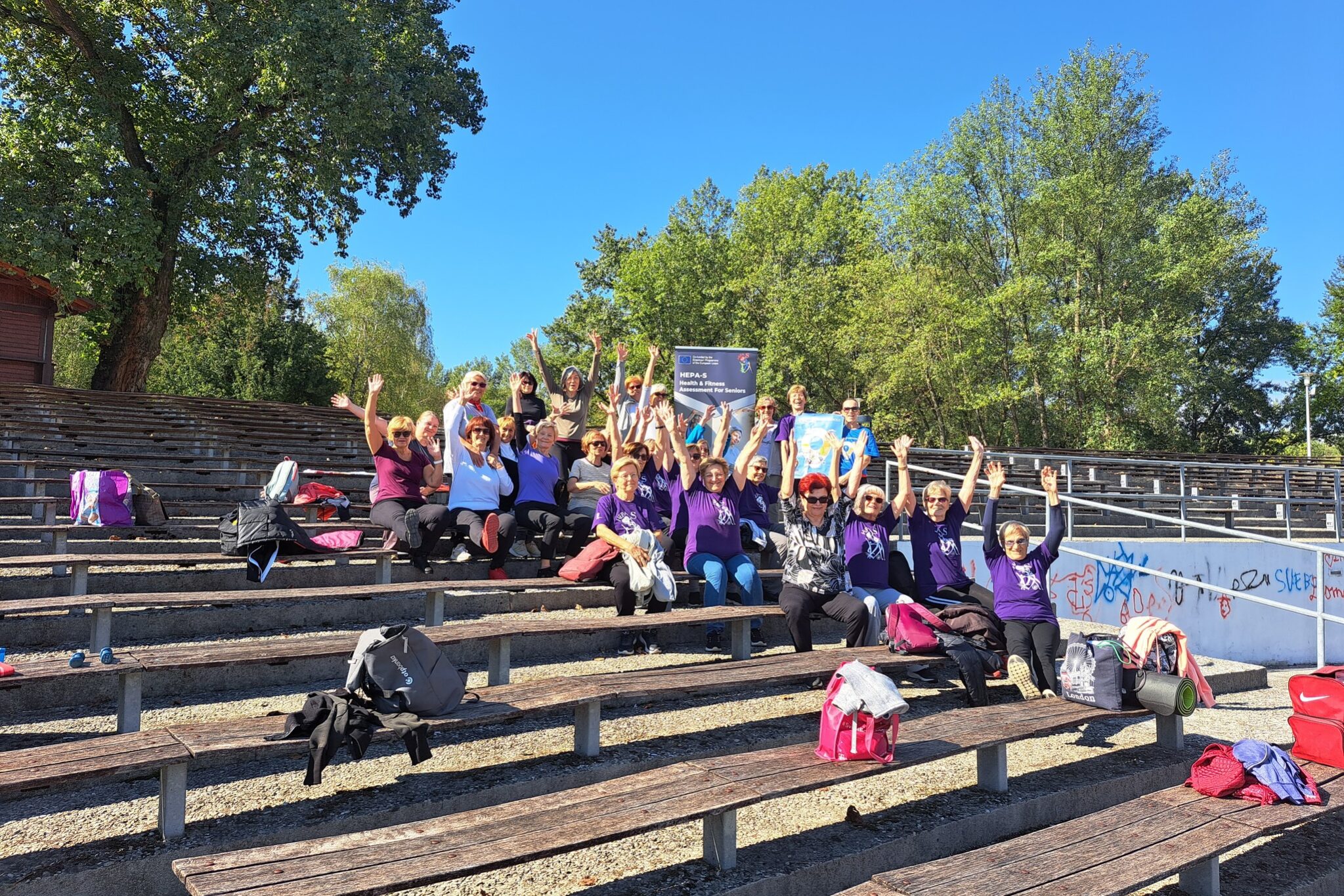 Users of Sport for All and the Hepa S project, on sunny Bundek, participate in the European Mobility Week with their corrective exercise program..